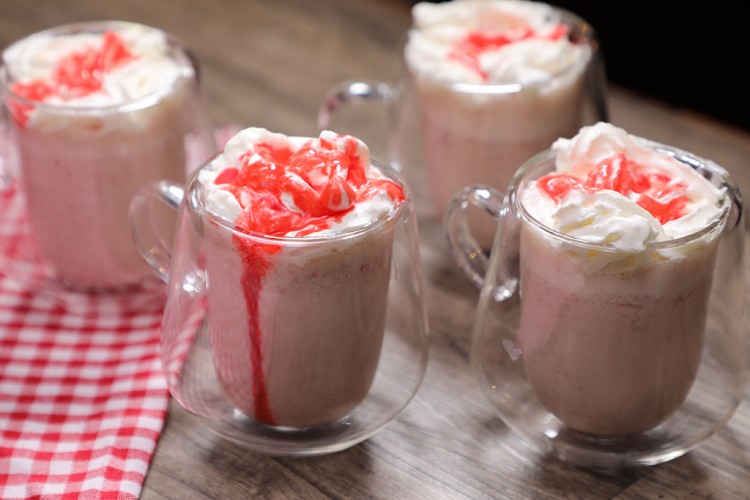 3. زيني بالكريمة المخفوقة، وسيرب الفراولة بحسب الرغبة.