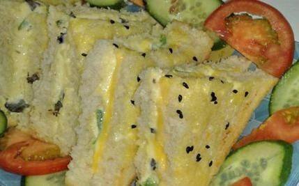 وتحشى كل شريحتين بمقدار ملعقة من الخلطة السابقة تقطع الشرائح المحشوة من