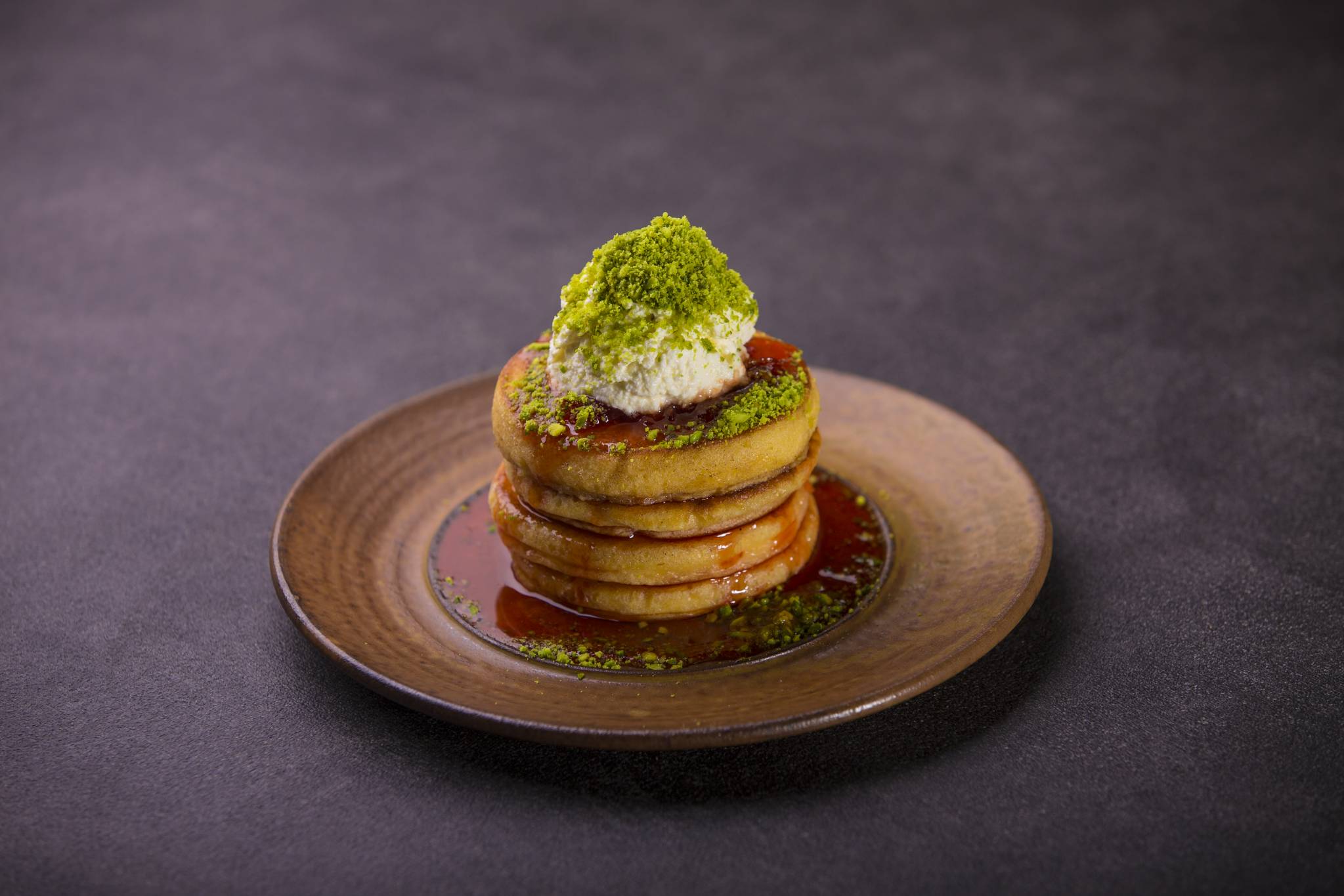 يزين البانكيك بالزينة المفضلة لديكم ويقدم فوراً.