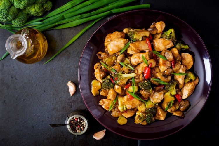- أضيفي المرق والصويا صوص واتركي المزيج على النار لمدة 5 دقائق حتى تتناقص المرق وتتمازج النكهات.