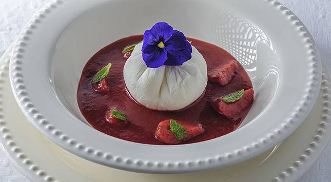 سيميفريدو جبن الماعز مع صلصة مارينارا الفراولة