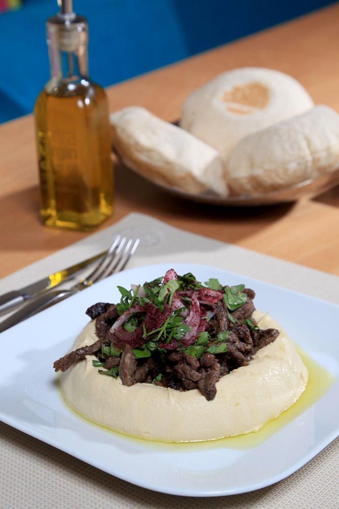 “الشيف أحمدالجميل، في “كافيه “بلان” بالرياض أعد لنا طبقاً مميزاً من شاوما اللحم بالحمص يقدم مع التبولة