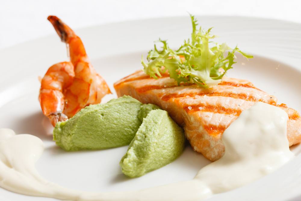 - ضعي السمك والروبيان في طبق التقديم، وزعي فوقه بقية الصلصة و قدميه مباشرة.