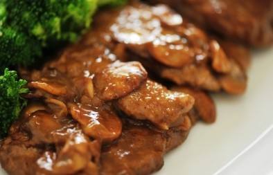 1.  تشوح شرائح اللحم البقرى في الزيت فوق نار متوسطة الحرارة حتى تكتسب اللون البنى