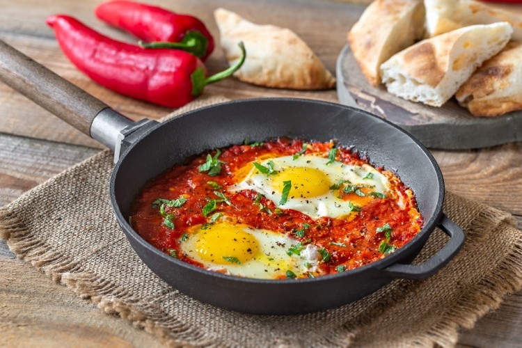 - زيدي البيض على وجه المكونات، اخفضي حرارة النار ثم غطي القدر واتركي الشكشوكة حتى تنضج لحوالي 5 دقائق قبل التقديم.