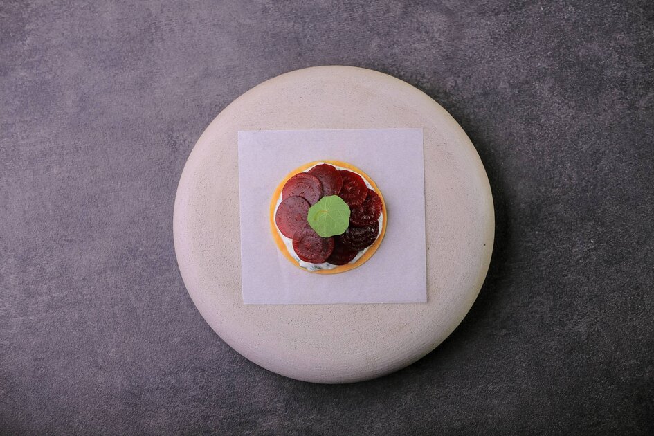 شمندر مشوي مع لبنة بالفجل الأبيض الحار