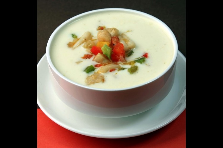 2- يُسكب الحليب بعد أن تحمّر المكوّنات قليلاً، فالكريما ومرق السمك.