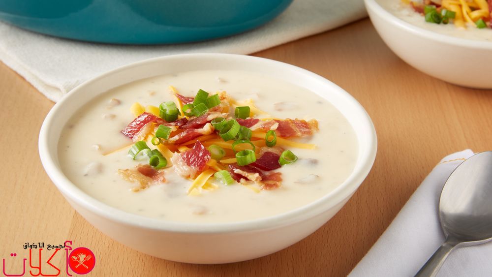 شوربة البطاطس بالحليب طبق لذيذ جدا، خاصة لايام الشتاء القادمة، مغذي ورائع، يتكون من البطاطا المهروسة الممزوجة مع الحليب، الملح، الفلفل، وعلى وجهها جبنة الشيدر، لحم البقر المفتت، والبصل الأخضر.