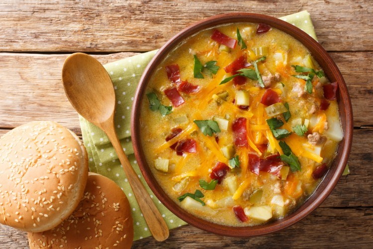 شوربة التشيز برجر السهلة … مزيج من الخضار الرائعة واللذيذة معدة بطبق من المقبلات الساخنة الطيبة، جربي شوربة التشيز برجر مع جبن الشيدر الغنية والطيبة