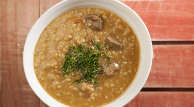 تضاف حبوب القمح الكاملة المكسرة (الجريش) في قدر،تغمر بالماء، تغطى وتطبخ عل نار هادئة لـ1 ساعة 40 ودقيقة تقريباً مع مراعاة التفقد كل 20 دقيقة وإضافة المزيد من الماء.