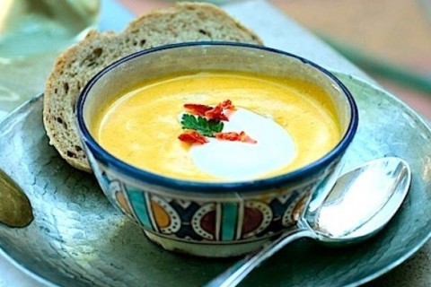 - بعد أن تنتهي من طهي الجزر، اتركيه يبرد قليلاً واخفقيه في الخلاط مع معجون الكزبرة واللبنة، قدمي الشوربة ساخنة.