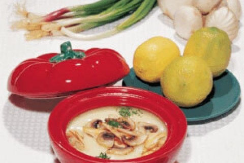 - يضاف الماء مع الفطر والدجاج وشوربة خلاصة الدجاج ماجي إلى قدر كبيرة.