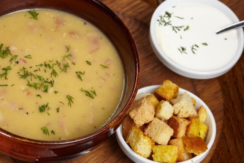 5. هنغرف الشوربة في طبق التقديم و نزينه بالبقدونس المفروم و نقدمه مع الخبز المحمص