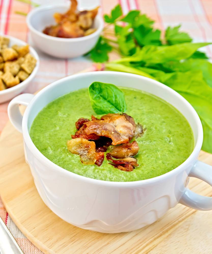 - يضاف الماء المغلي الحار ثم تترك حتى تغلي اللحمة، توضع السبانخ وتقلب الشوربة قليلاً، تترك على نار هادئة حتى تنضج السبانخ ثم يرفع عن النار.