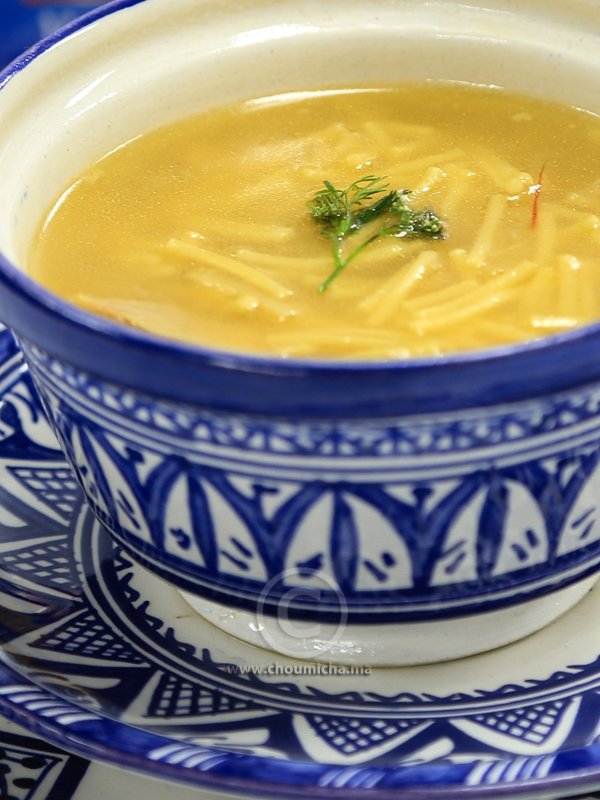 - تزال أفخاذ الدجاج من الطنجرة، تضاف الشعرية تدريجيا مع التحريك لمدة 8 إلى 10 دقائق.