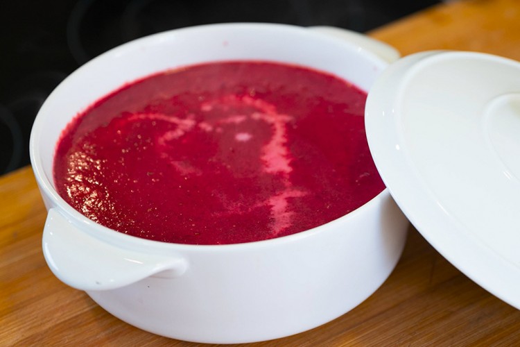 - أضيفي الشمندر واخلطي ثم أضيفي المرق واتركي المزيج يغلي لمدة 20 دقيقة.