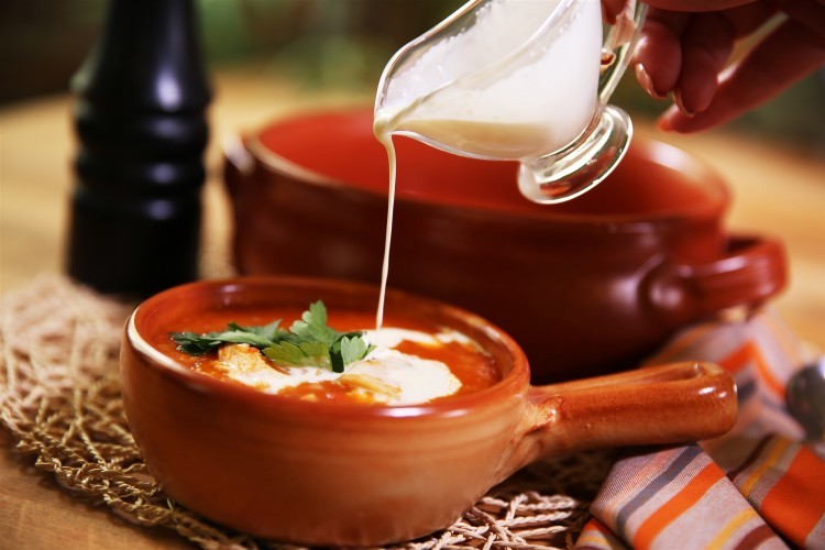 6. أبعدي الشوربة عن النار، أضيفي الكريمة وقدميها مع قليل من البقدونس.