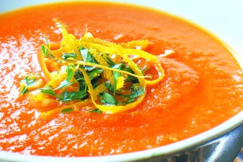 - ثم نضع الشوربة ثانيا فى إناء على نار هادئة ونضيف عصير البرتقال ونقلب.