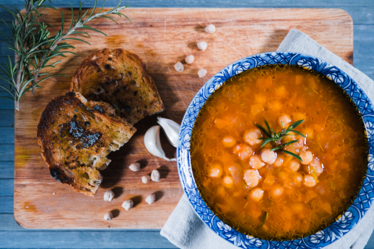 شوربة الطماطم بالحمص والسبانخ