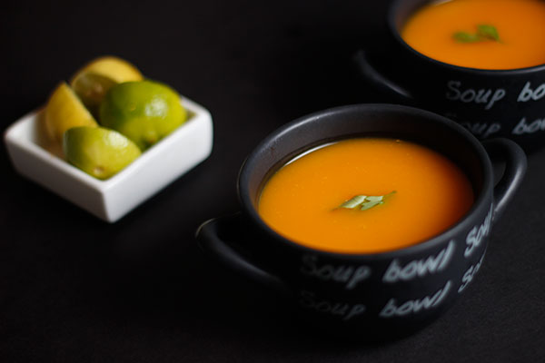 3. تُضرب الشوربة في الخلاط أو بواسطة الخلاط اليدوي وتقدم.
