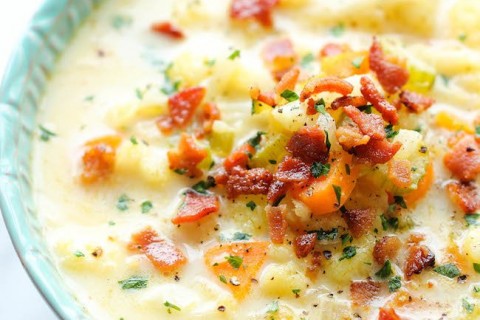 - نستبعد ورق اللورا من الشوربة ثم نضيف خليط اللبن مع الدقيق مع التقليب المستمر حتى تسمك الشوربة.