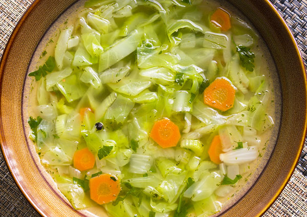 3. أضيفي المرق والملح والفلفل والكركم والشطة واتركي القدر على النار المتوسطة حتى ينضج الخضار.