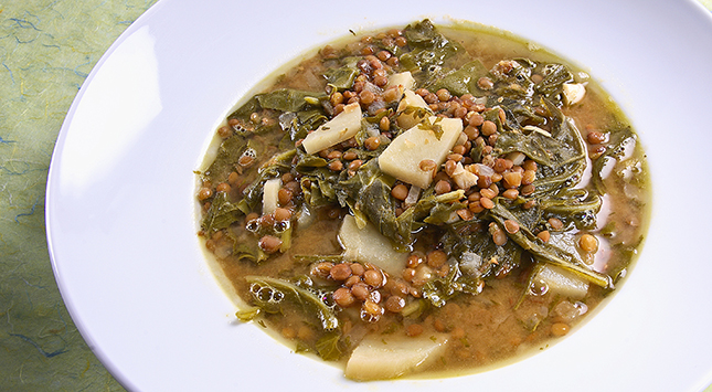 يُطبخ العدس في مرق الدّجاج، في قدر، حتّى يلين ولكن قبل أن يَنضج. تقريباً لمدة 20 دقيقة.