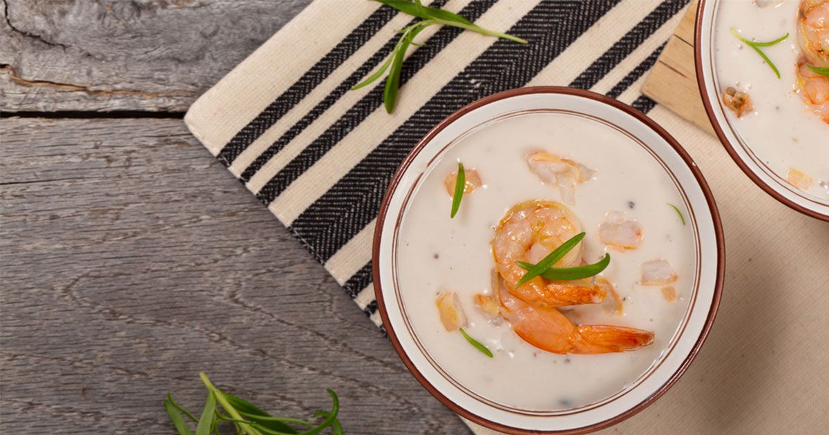 8- ارفعي القدر عن النار واسكبي شوربة الروبيان في طبق التقديم.