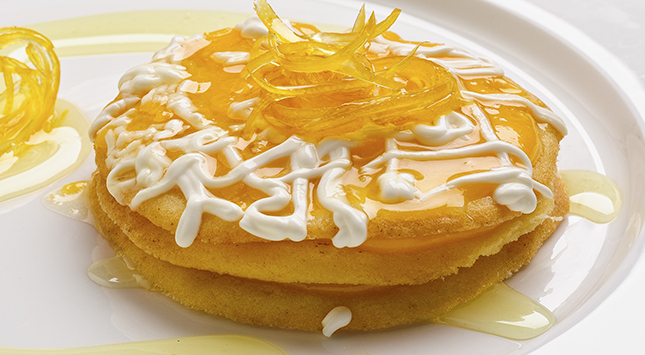 تُخفق الزبدة والسكر وقشر الليمون والبيض في وعاء بواسطة مضرب كهربي إلى أن يصبح الخليط باهت اللون وكريميًّا.
