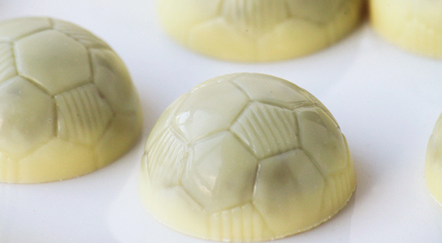 تدهن قوالب الشوكولاتة بالشوكولاتة البيضاء وتترك حتى تتماسك.