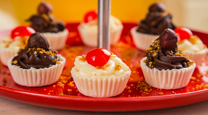 يدار مقدار ملعقة صغيرة في قوالب الامنيوم الصغيرة الخاصة بالشوكولاته وبواسطة المعقة توزع على الجوانب والقاعدة حتى تغلفها تماما
