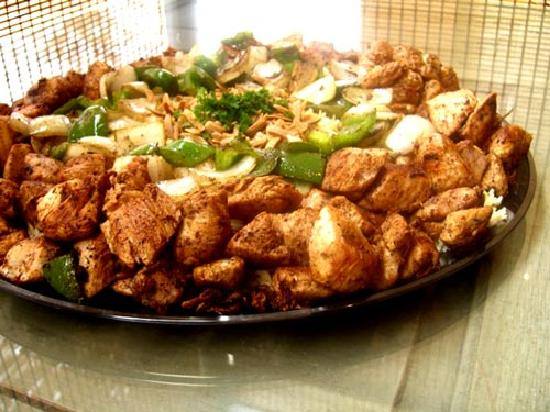 يقدم الشيش مع الفطر مع خبز و سلطة .
