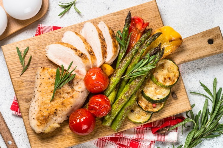 صدور الدجاج المشوية مع الخضراوات للرجيم … صدور الدجاج من أفضل أصناف اللحوم المناسبة لوجبة رجيم خفيفة ومشبعة وقليلة السعرات الحرارية، جربيها مع تشكيلة من الخضار وتمتعي بوجبتك المثالية مع مطبخ اكلات