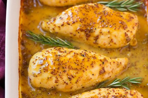 - توضع صدور الدجاج في طبق ثم نضع جزء من خليط الخردل عليها ونضعهم في الثلاجة لمدة ساعتين