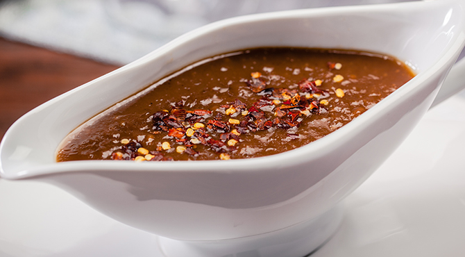 يضاف عصير التمر الهندي، السكر، الفلفل ويترك يغلي مع التقليب لمده 5 دقائق ويقدم