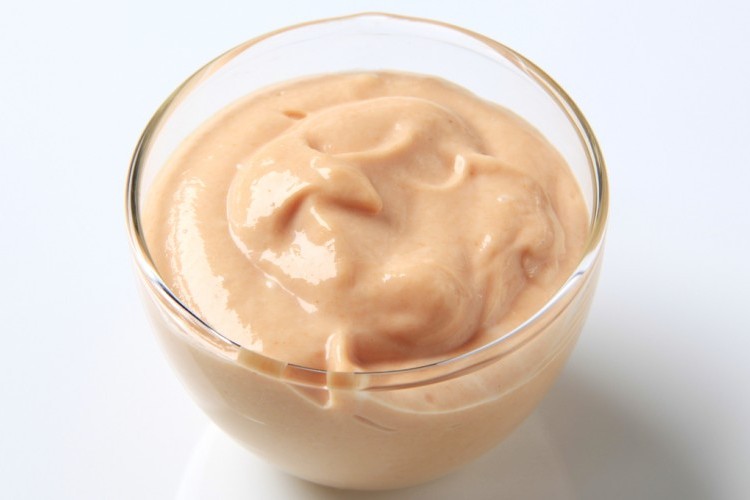 1. اخلطي المايونيز والكاتشاب في طبق.