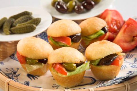 - اقطعي الصمون الى نصفين، احشيها بتشكيلة من الأجبان والخضراوات حسب الرغبة.