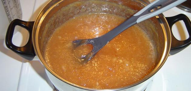• نبشر التفاح بواسطة المبشرة في طنجرة، ونضيفُ إليه السكّر، ونتركه في الطنجرة داخل الثلاجة لمدّة ساعة كاملة.