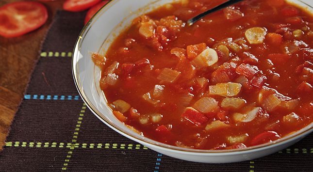 تضاف الطماطم وتشوح لمدة 15 دقيقة إلى أن تئز.