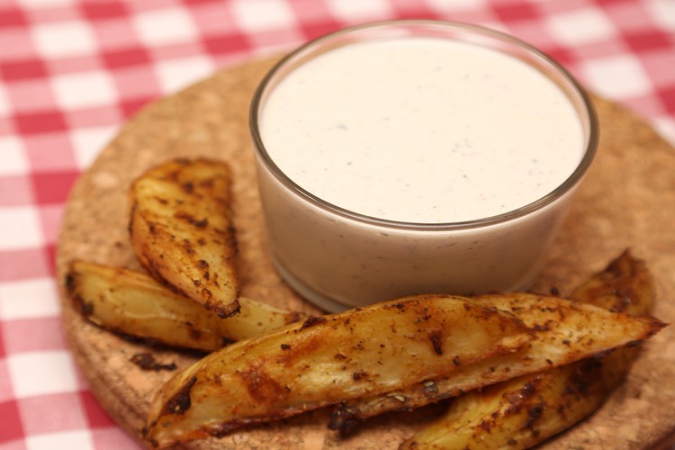 3. قدمي صلصة الرانش بجانب البطاطس المشوية المقرمشة.