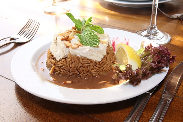 5. فتتي السمك فوق الأرز ووزعي الصنوبر وقدميه ساخنا.