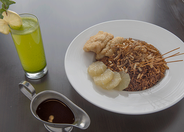 8. طريقة التقديم: زيني الطبق بالصنوبر المقلي والبصل المقلي، وقدّميه مع الصلصة.