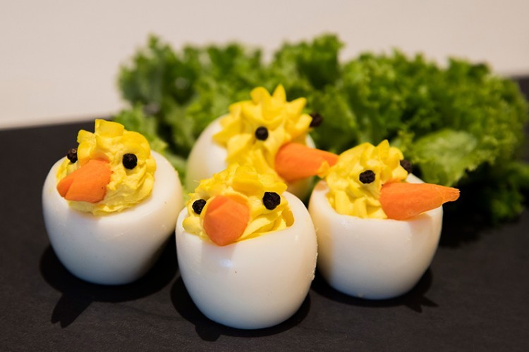 3. قومي بحشي الخليط في أوعية البيض لتحصلي على شكل صوص.