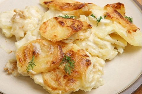 - إسكبي الكريمة السائلة فوق البطاطس، ورشي السطح ببقية مقدار الجبنة.