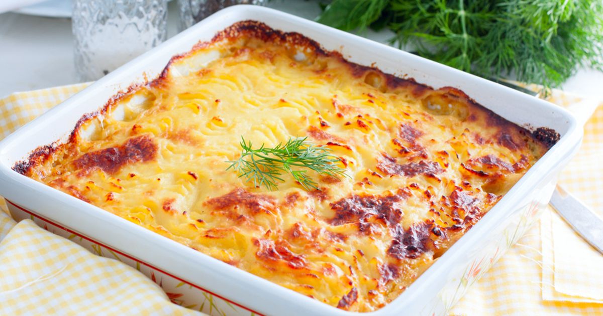 9- أدخلي الصينية إلى الفرن لـ20 دقيقة حتى يصبح وجه الصينية ذهبي.