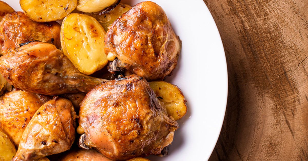 1- في قدر على نار متوسطة، حمي زيت غزير واقلي فيه البطاطس حتى تنضج وتتحمر. 2- في وعاء صغير الحجم، امزجي الثوم، عصير الليمون الحامض وزيت الزيتون جيداً. 2- ادهني صينية فرن بالقليل من الزيت النباتي ثم صفي قطع الدجاج. 3- نكهي قطع الدجاج بالملح والفلفل الأسود. 4- وزعي البطاطس المقلي فوق الدجاج ثم أسكبي خليط عصير الليمون الحامض. 5- غطي الصينية بواسطة ورق قصدير ثم أدخلي الصينية إلى فرن محمى مسبقاً على حرارة 180 درجة مئوية حتى تنضج قطع الدجاج.