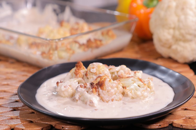 4. صبي خليط الطحينية فوق الزهرة، وأدخلي الصينية للفرن مدة 7 دقائق.