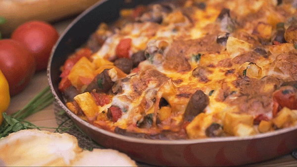 صينية السجق مع الخضار والجبن بالفيديو
