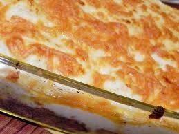 - يضاف اللحم المفروم مع التحريك لمدة 3 دقائق أخرى تضاف الكوسا والبطاطس يوضع الخليط في صينية فرن