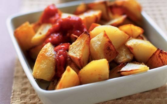 - تقشر 750 ج من البطاطس وتقطع إلى مكعبات وتصف في صينية خبز.
